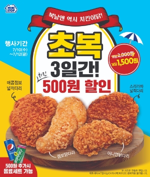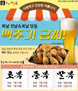 21일 중복의 경우에는 전년대비 55% 늘어났으며 복날. 복날에 즐겨 찾는 음식으로 치킨이 급부상하고 있다.28일 bhc치킨에 따르면 올해 초복과 중복 등 7월 복날 매출을 분석한 결과 치킨 매출이 전년대비 39% 늘어났다.